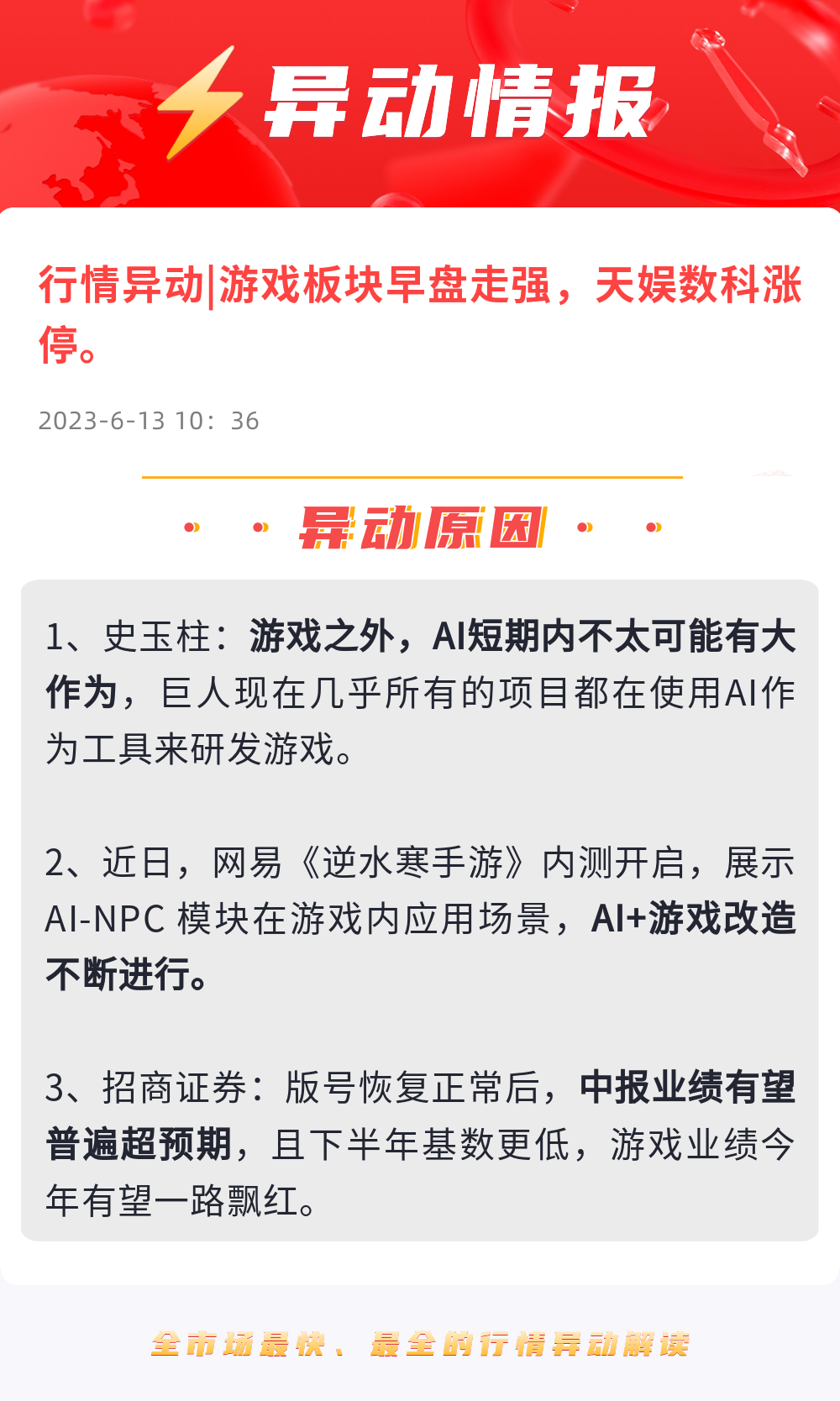 皇冠龙虎斗博彩平台电竞_异动谍报|史玉柱发话!AI短期内只看游戏,机构忖度行业中报大宗超预期