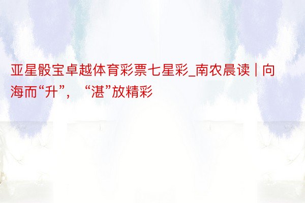 快评丨向海而“升”,“湛”放精彩