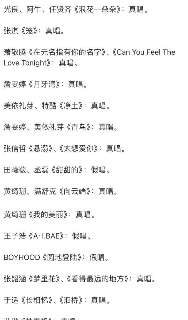 其他演员等于假唱了,像是田曦薇,胡歌,唐嫣,唐九洲,就连腾格尔敦朴也被质疑全程假唱。